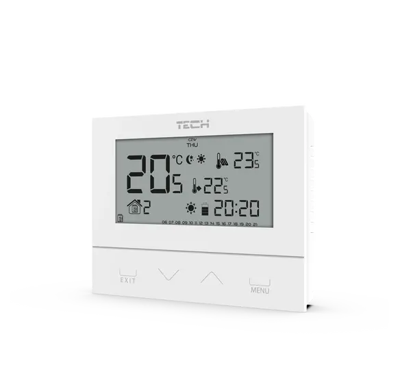Prin conectarea unui senzor suplimentar de temperatură pentru pardoseală, termostatul va controla temperatura camerei ținând cont și de temperatura podelei.Se pot seta limite minime și maxime pentru temperatură. Acest lucru ajută, de exemplu, la prevenirea răcirii excesive a podelei în încăperi bine însorite.